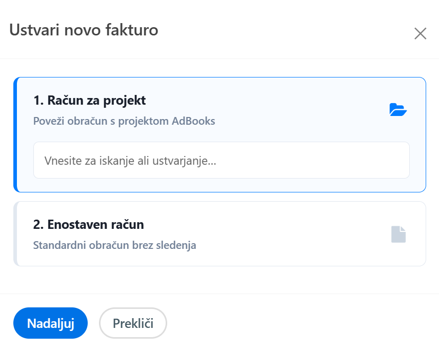 - Enostaven račun – račun brez projekta