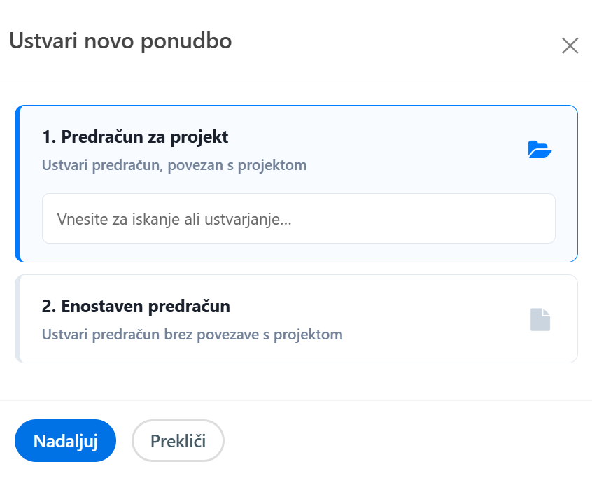 - Enostaven ponudba – ponudba brez projekta
