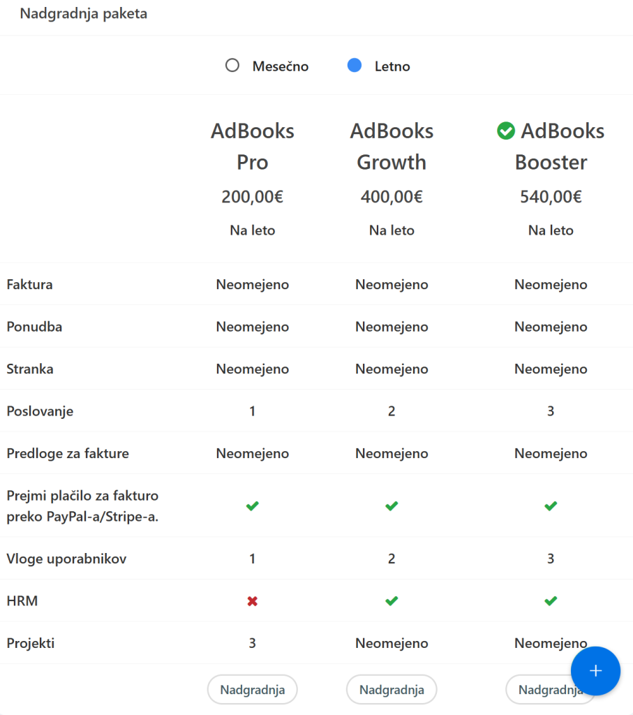 - Growth in Booster paketi – neomejeno število projektov
