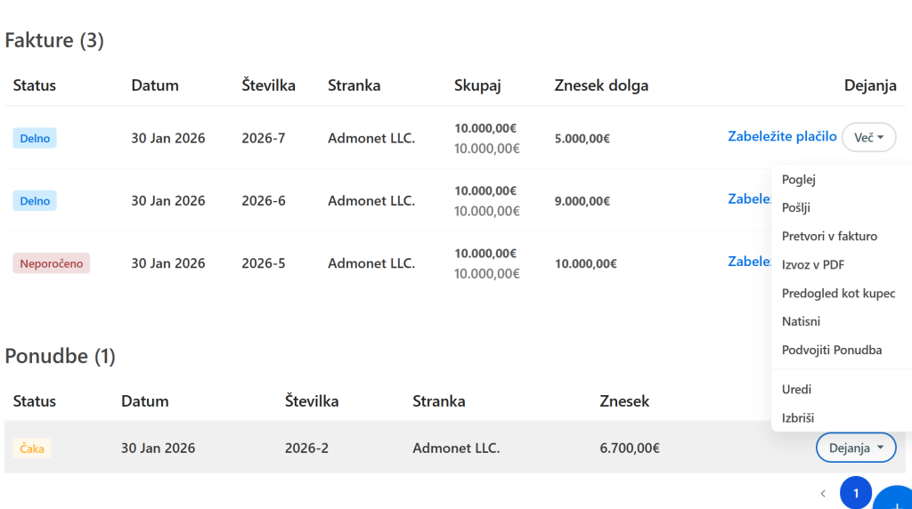 Ustvarjanje fakture in ponudb #